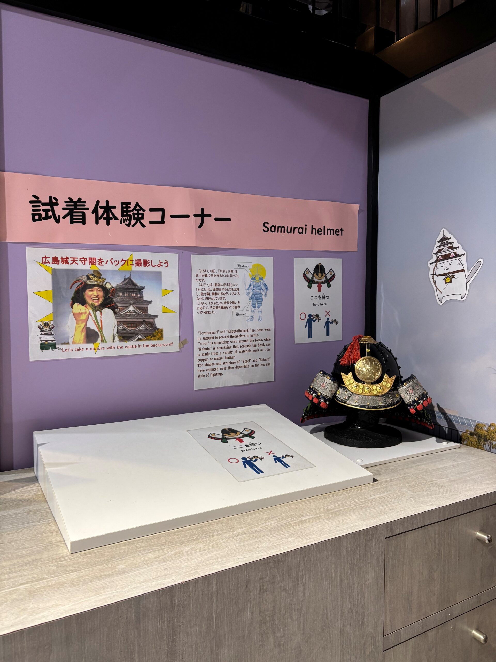広島城の歴史が学べ、模型や日本刀の展示、兜をかぶって写真を撮れるコーナーもありました!