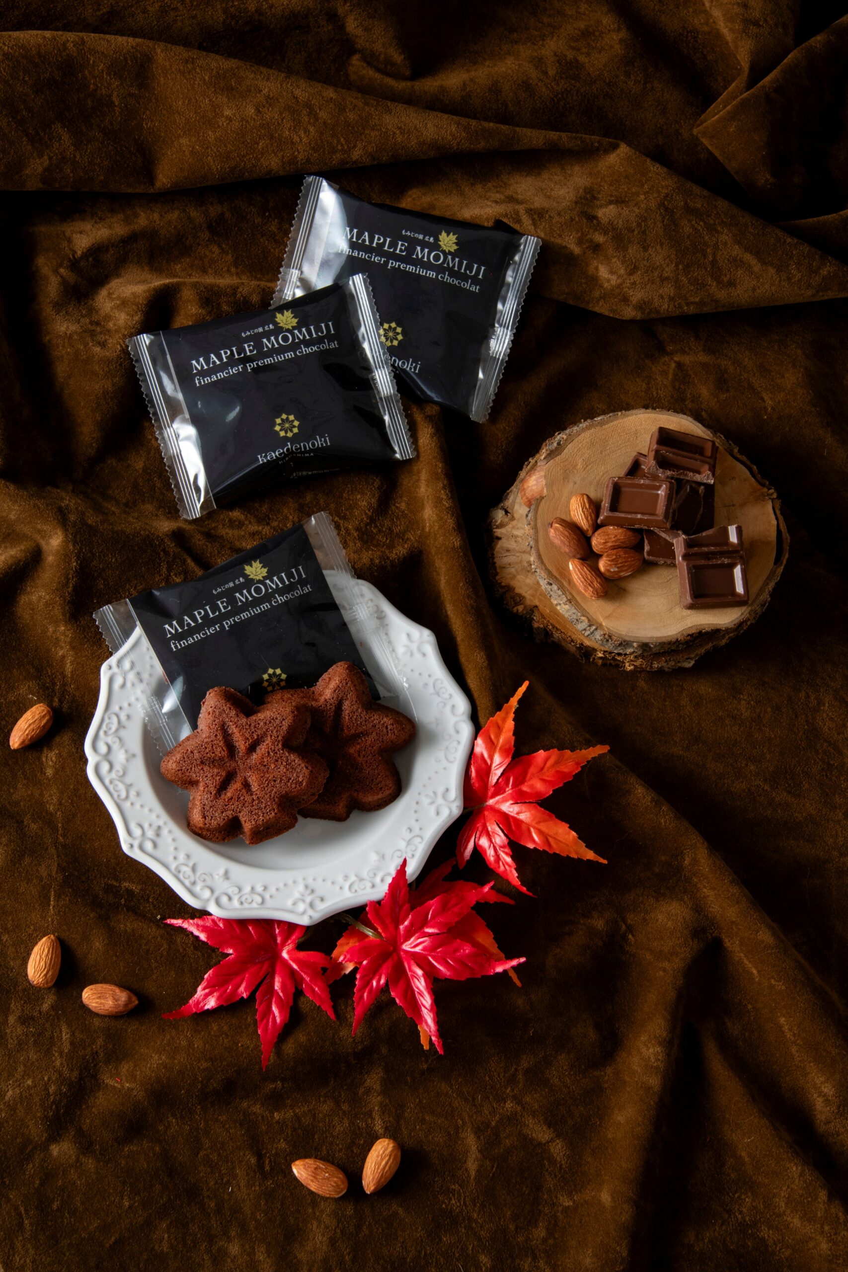 メープルもみじフィナンシェをベースに、ココアパウダー、クーベルチュールチョコレートを加えています。